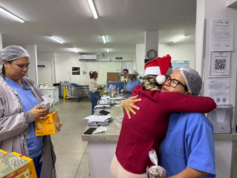 Na noite do dia 23 de dezembro, o Hospital Regional de Araguaína (HRA) proporcionou alegria e cuidado aos colaboradores que estavam de plantão. Por meio do Projeto de Humanização, a unidade promoveu uma ação especial com músicas natalinas e a entrega de lembrancinhas com panetones, desejando boas festas aos profissionais.