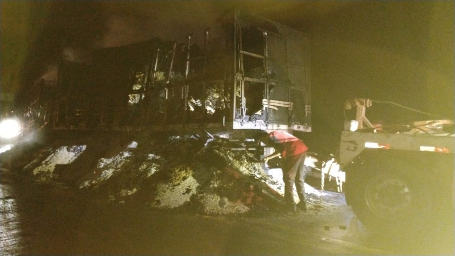 O incêndio começou por volta das 23h22 e mobilizou equipes do Corpo de Bombeiros e Polícia Rodoviária Federal. Apesar do susto, não houve vítimas.