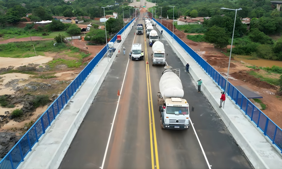 No sábado (20) e no domingo (21), o DNIT realizou testes de estrutura e segurança da nova ponte na BR-226, sobre o Rio Tocantins, que liga os municípios de Aguiarnópolis (TO) e Estreito (MA).