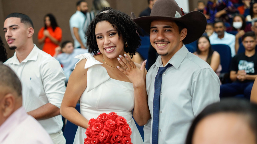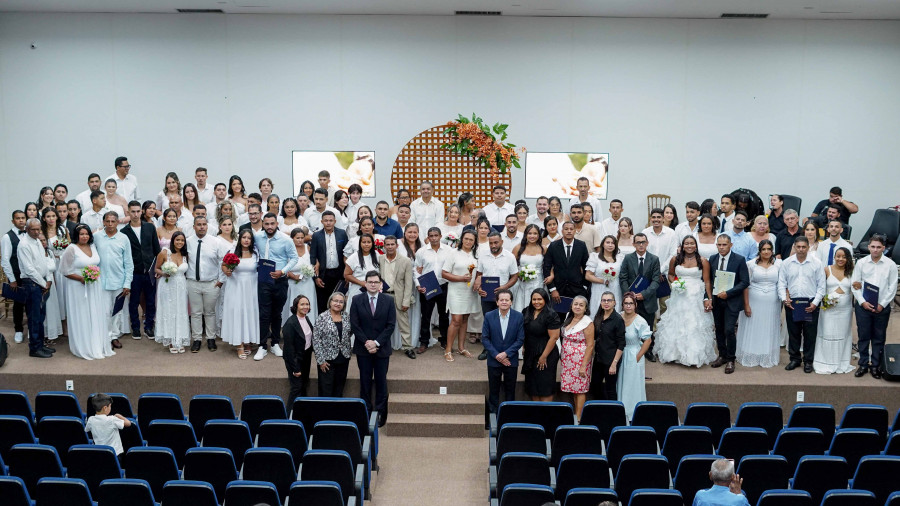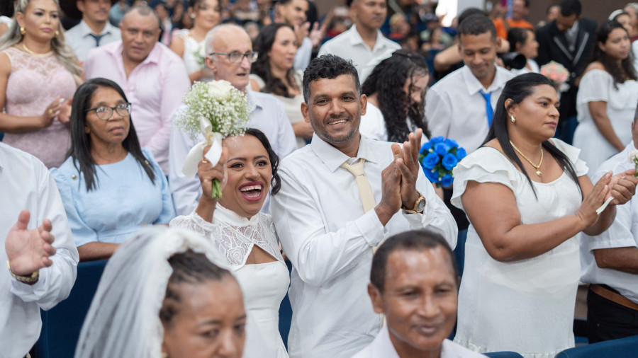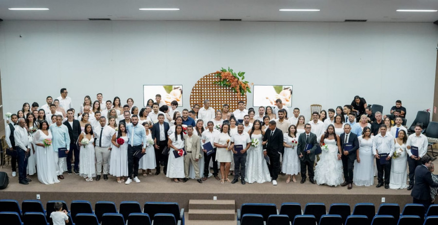 A cerimônia oficializou a união de 96 casais, em um evento promovido pela Diretoria do Fórum da Comarca de Araguaína, em parceria com o Centro Judiciário de Solução de Conflitos e Cidadania (Cejusc) e o Serviço de Registro Civil das Pessoas Naturais, Interdições e Tutela de Araguaína. A celebração foi embalada pela banda Reciclarte, da Escola de Artes Raimundo Paulino, e acompanhada de perto por familiares, amigos e autoridades locais.