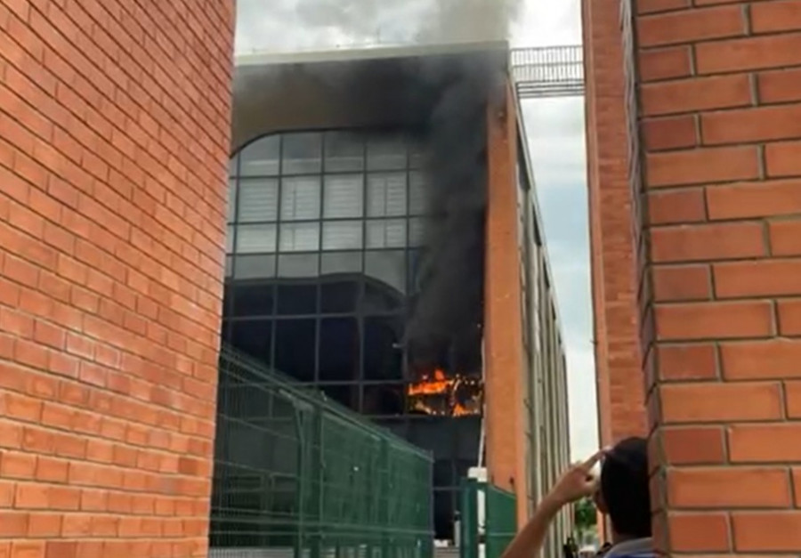 Vídeos que circulam as redes sociais mostram chamas dentro do prédio e bastante fumaça. Assista abaixo.