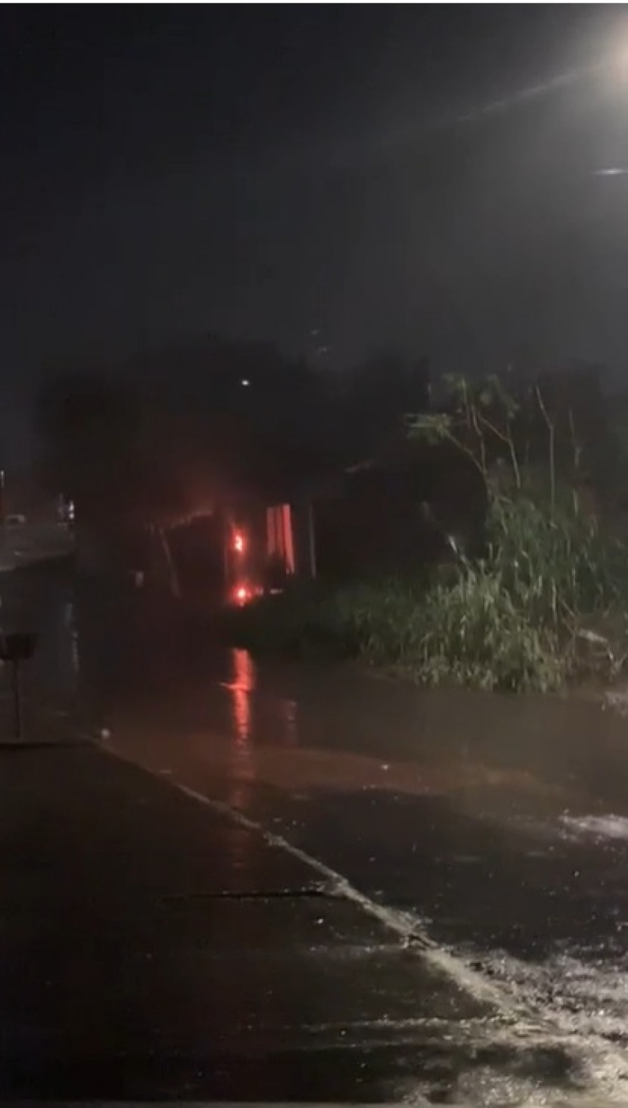 Em vídeos gravados por vizinhos e compartilhados nas redes sociais, é possível ver um pequeno foco de fogo, possivelmente na caixa do padrão de energia, logo após a descarga elétrica.