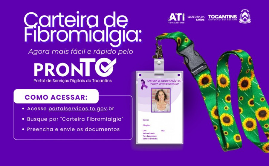 O Portal de Serviços do Tocantins consolida-se como a principal plataforma de acesso aos serviços públicos no estado com a disponibilidade da solicitação da Carteira de Identificação da Pessoa com Fibromialgia. O serviço, que materializa os direitos previstos em lei estadual, pode ser realizado de forma digital e presencial, representando um avanço na praticidade e no acolhimento das pessoas que convivem com a síndrome. A versão digital do serviço foi desenvolvida e implementada pela Agência de Tecnologia da Informação (ATI).